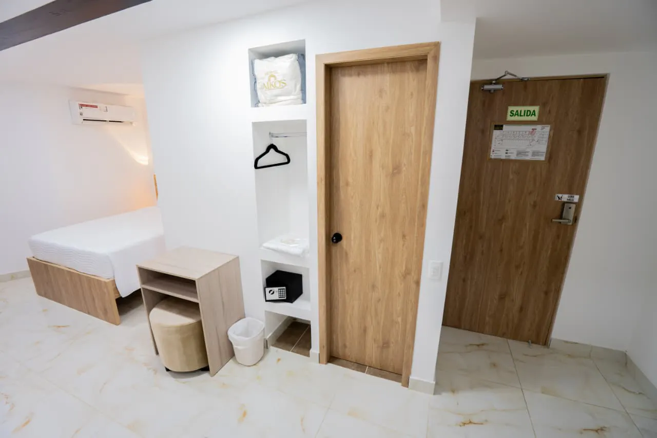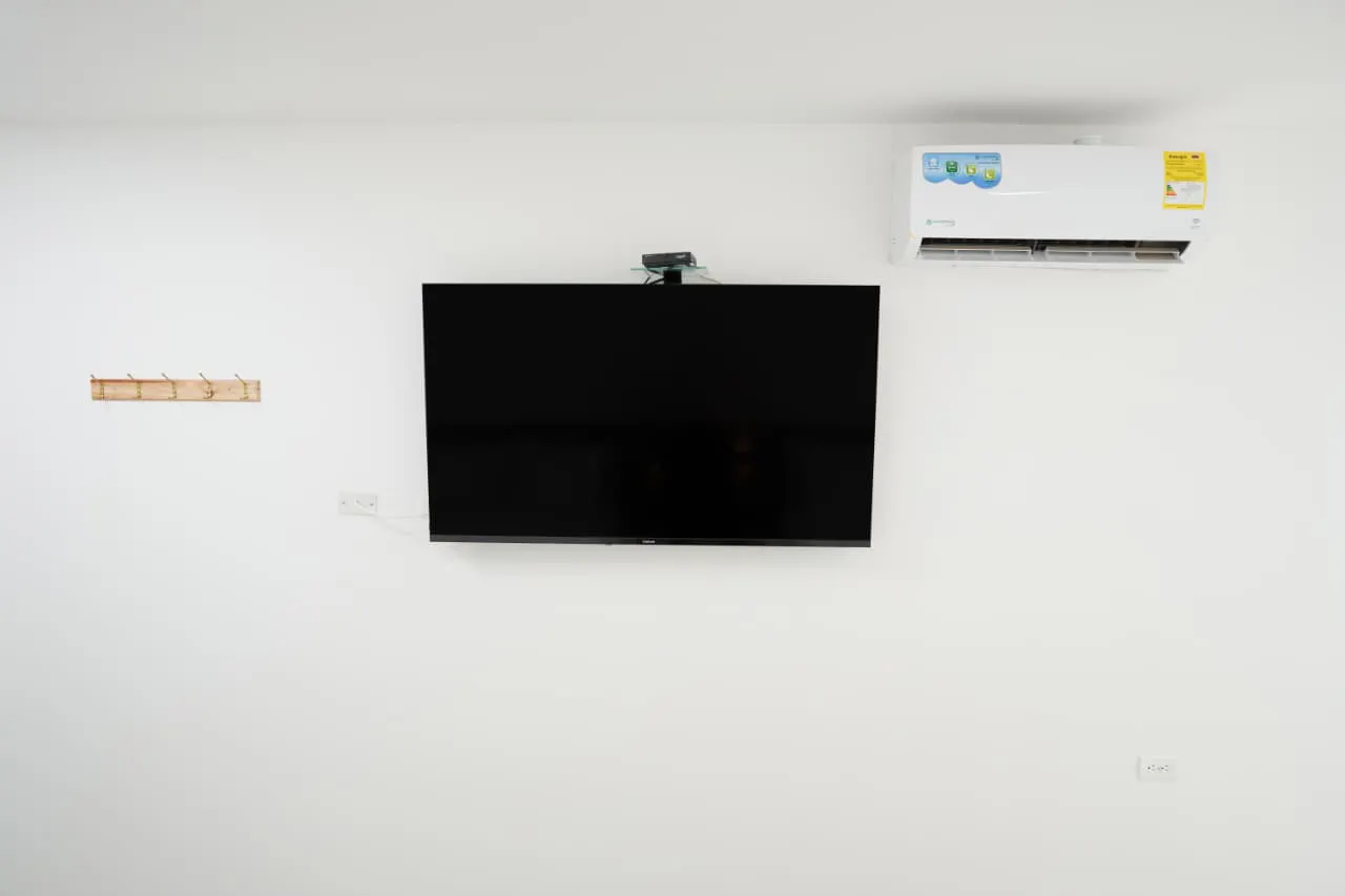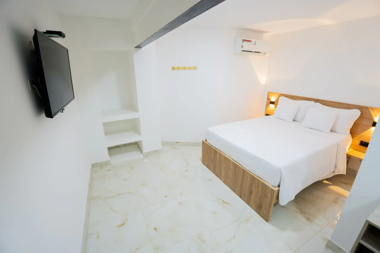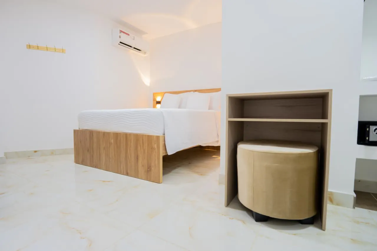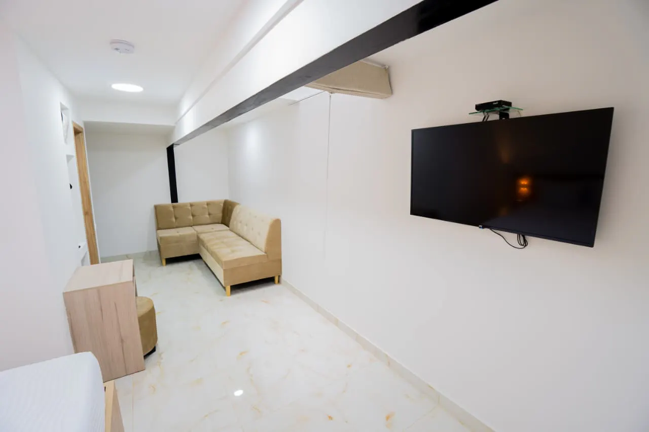 THIS SPACIOUS ROOM FEATURES 1 DOUBLE BED, COUCH, WIFI, HOT WATER, AIR CONDITION, SAFE, DESK AND SMART TV.